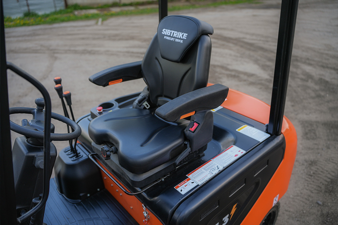 Плавающее регулируемое сиденье с амортизацией - снижает вибрации, а регулировка под вес и посадку оператора, обеспечивают комфорт и снижает нагрузку на спину и позвоночник в течении смены, снижая утомляемость. Удобное и эргономичное сиденье SIBTRIKE разработано специально для эксплуатации на вилочных погрузчиках, обеспечивая водителю максимальный комфорт и безопасность.